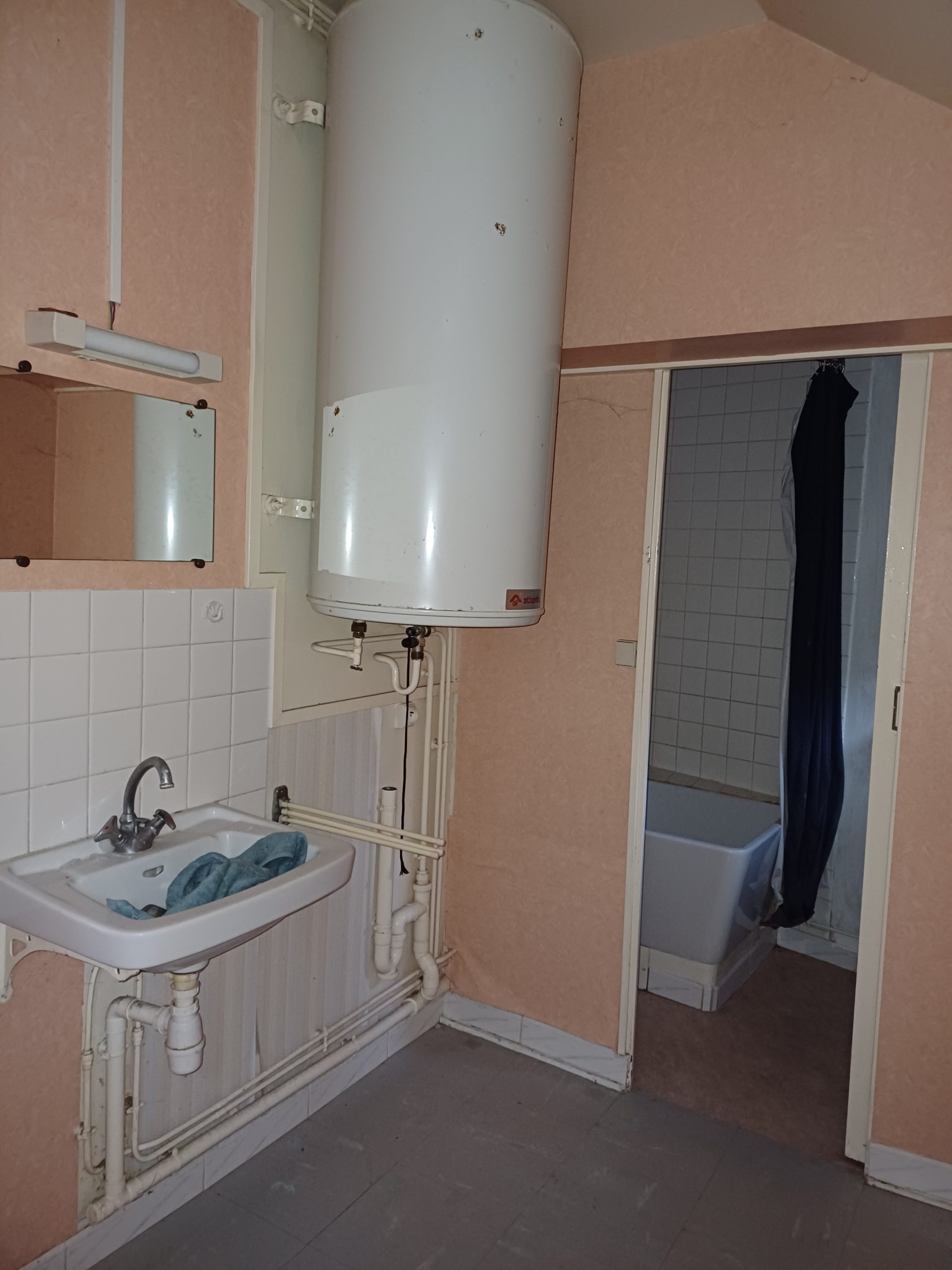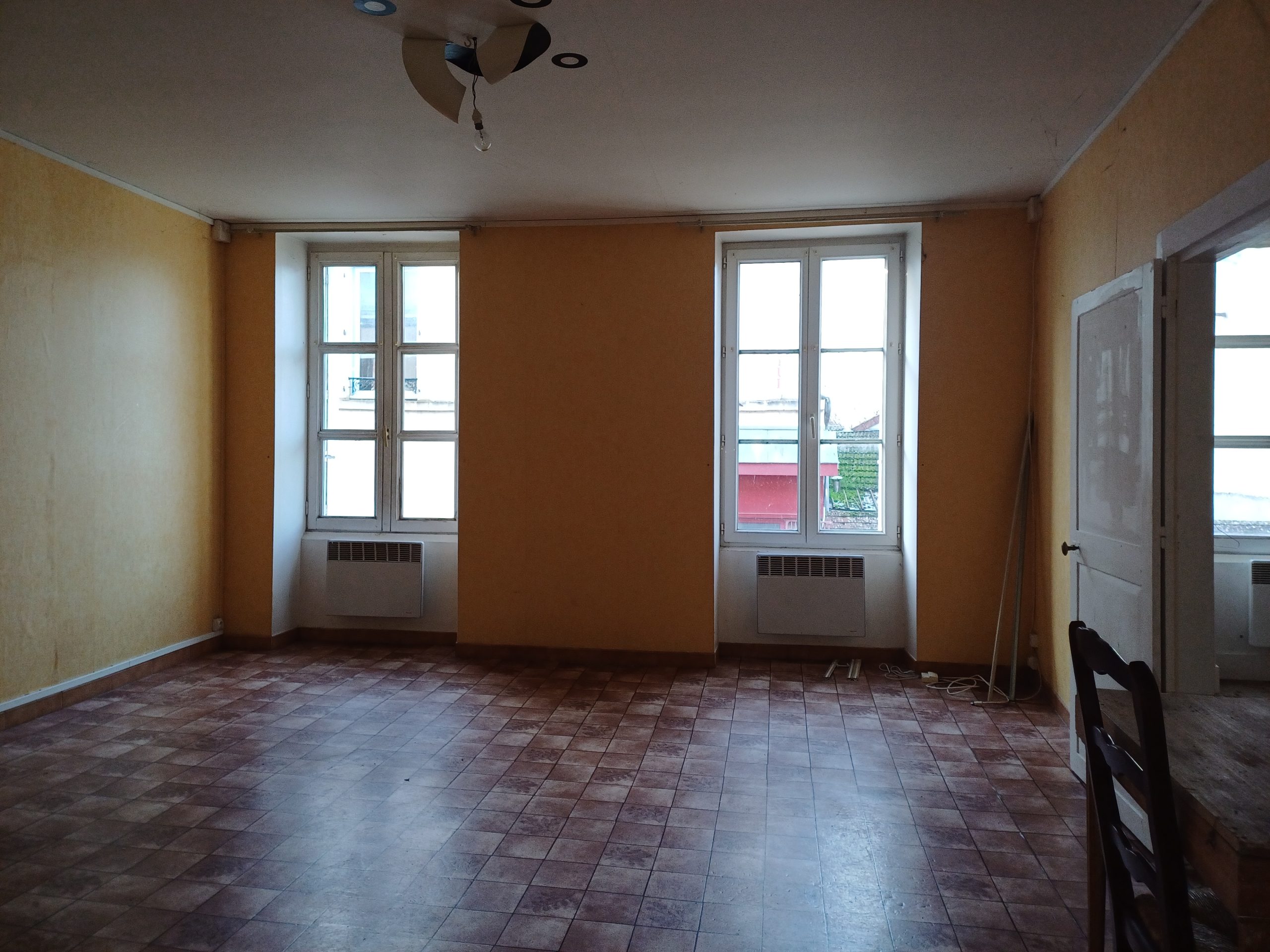 - Le local commercial de 48m2 situé en rez-de-chaussée comprend: une salle d’entrée/réception de 8m2, une pièce de 16m2, couloir desservant un wc et une buanderie séparés, une cuisine – cave – chauffage électrique – PAS DE DPE